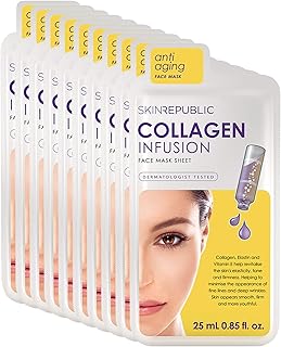 Skin Republic Lot de 10 masques pour infusion de collagène réduisant les rides et les rides profondes
