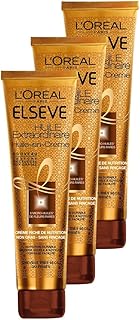 L'Oréal Paris Elsève L'Oréal Paris Huile-en-Crème de Nutrition sans Rinçage pour Cheveux Très Secs et Frisés 150 ml - Lot de 3