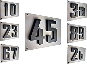 Numéro de maison 3D Anthracite RAL 7016 Plaque de numéro de maison en acier inoxydable V2A (N.D.) 35 x 28 cm Couleur aluminium