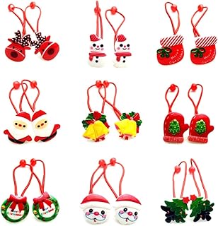 Cuigu 9Pcs / Set élastiques à Cheveux pour Bébés Enfants, Joyeux Noël Cartoon Style Corde à Cheveux Attaches Cheveux sans Plis Accessoires Cheveux Chouchou, Arbre de Noël, Style Aléatoire
