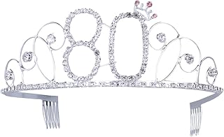 Frcolor Couronne Anniversaire 80 Diadème Tiare avec Peigne à Cheveux Cristal Strass Argent Anniversaire 80 Ans pour Femmes