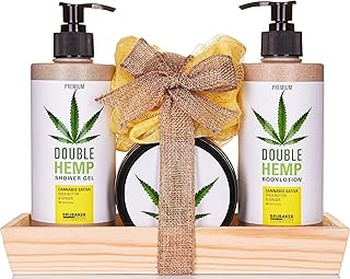 BRUBAKER Cosmetics - Coffret de bain - Soin Huile de chanvre - Beurre de karité & Gingembre - 5 Pièces - Plateau décoratif - Idée cadeau