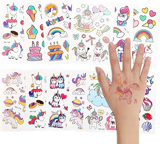 Herefun Tatouages Ephémères Enfants, 12Pcs Tatouage de Licorne, Tatouages Temporaires, Tatouages Ephémères Enfants pour Fournitures Fête Cadeaux Parti