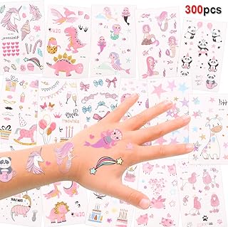 Konsait Tatouages temporaires pour Enfants, 256 x Tatouages ephémères pour Enfants, Fille, Anniversaire d'enfant Petit Cadeau Pinata, Licorne, Sirène Motifs différentes