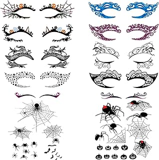 Tatouages temporaires de Niceauty, tatouages temporaires d'Halloween -11 faux tatouages d'oeil et 2 tatouages temporaires d'araignée pour les femmes et les hommes, facile à mettre en/hors service