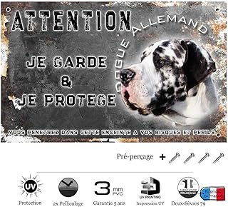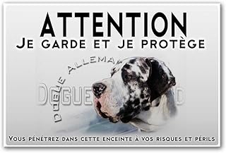 Pets-Easy.com Attention au Chien Dogue Allemand arlequin - pré percée et vis livrées. De 30 cm à 15 cm…