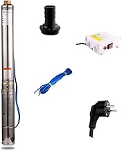 1 x Pompe Submersible 1 x Boîtier de Commande 1 x Câble de 20 m Spécification Moteur: 750 W Tension: 230 V/50 Hz Hauteur de Livraison Maximale: 69 m Débit Maximal: 6500 L/h Profondeur d'Eau Admissible: 20 m Révolutions: 2850 tr/min Diamètre de Filetage Interne: 1,25 " (3,2 cm) Câble de Connexion: 20 m Roues: 10 pièces Poids Total: 16,8 kg VEVOR Pompe à Eau Immergée 3" SCR 0,25, Pompe de Puits Profond 0,25 KW, Pompe Submersible pour Puits Longue Durée avec Câble de 20 m, Maillage de Filtration Multiple pour Rivières Réservoirs Pompe submersible pour puits en acier inoxydable Avec cette puissante pompe profonde, vous pouvez arroser facilement et confortablement même à de